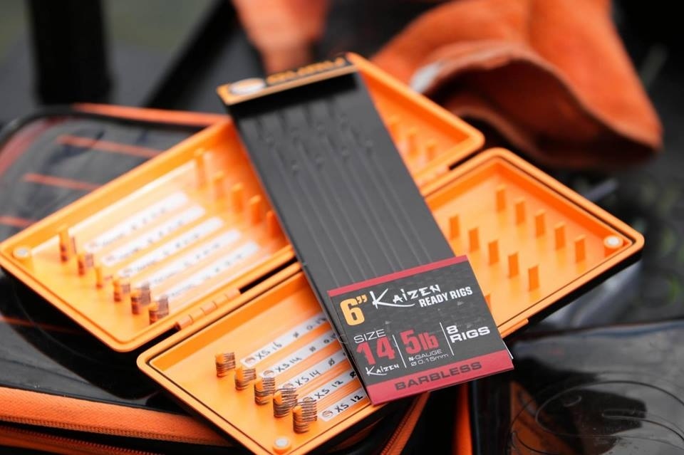 Heb jij ook een hekel aan het knopen van onderlijnen en is de weerhaakloze Kaizen haak toevallig jouw favoriet? Deze onderlijnen hebben een standaard lengte van 15 cm (6") en zijn geknoopt van N-Gauge nylon in de bijpassende diameters. 8 rigs per verpakking. Kaizen #10 - 0,19 mm nylon Kaizen #12 - 0,17 mm nylon Kaizen #14 - 0,15 mm nylon Kaizen #16 - 0,15 mm nylon