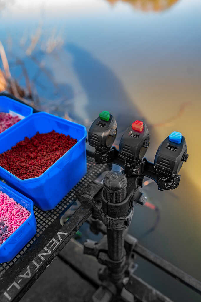 Der Triple-Counter ermöglicht es dem Angler, mehrere Setzkescher mit Leichtigkeit im Auge zu behalten, perfekt für das Matchfischen. Die Bedienung erfolgt ganz einfach durch Drücken der großen Taste auf der Oberseite, während die Anzeige durch Drehen des Drehknopfes an der Seite des Gerätes zurückgesetzt werden kann.