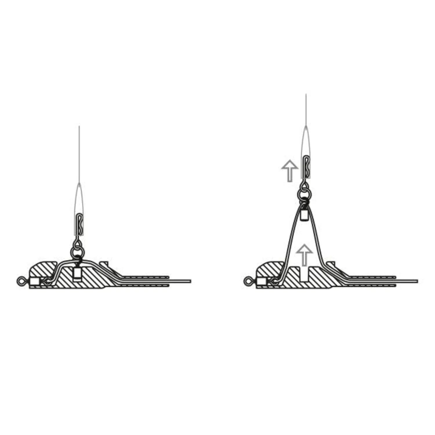 Das Design des Gewichts und der halbstarre Einsatz gewährleisten maximales Einstechen des Hakens und eine doppelte Bisserkennung, sobald der QC Shocker Wirbel aus dem Gewicht gezogen wird. Der zusätzliche Schlitz oben am Gewicht ermöglicht es Ihnen, das Gewicht beim Transport Ihrer Ruten aus dem Einsatz und dem mitgelieferten Drop Down Bleifrei-Vorfach zu entfernen.