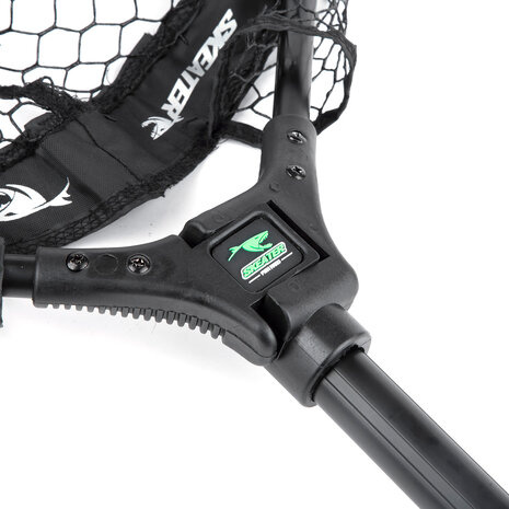 Der Kescher besteht aus knotenlosem, 20 mm dickem, gummiertem Sechseckgewebe, das die Fische schützt und das Risiko von Hakenverwicklungen reduziert.