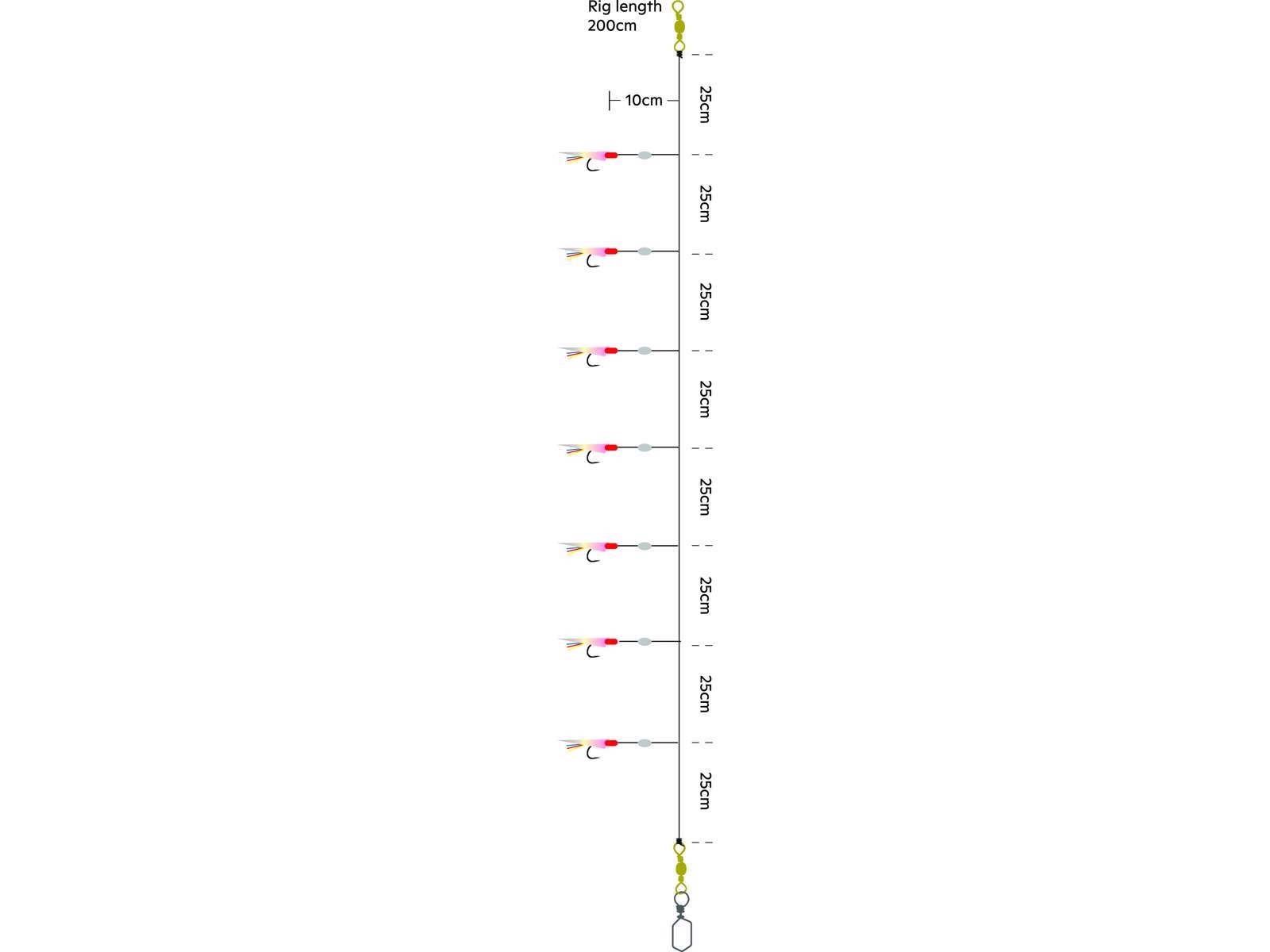 The Kinetic Sabiki MaxCatch has 7 hooks and the strength to quickly fill your bucket. Small, jet powerful hooks with strike-tempting fish skin and flash just works!