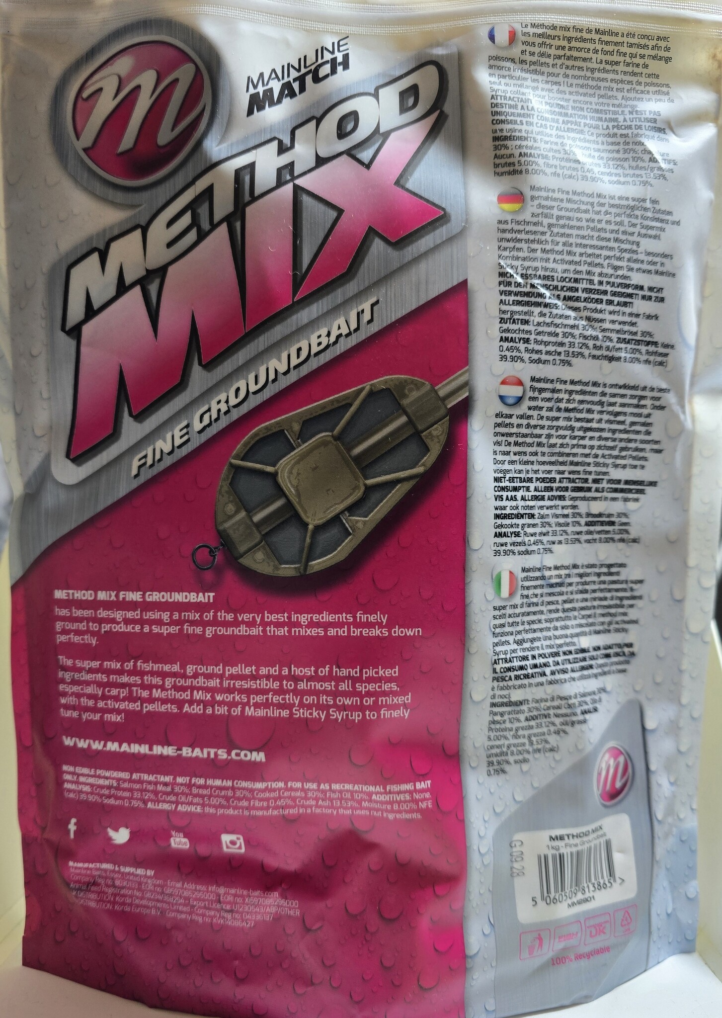Volgepakt met goede attractoren, aangevuld met een superrijke mix van vismelen en gemalen pellets. De Match Fine Method Mix is ontwikkeld met behulp van de beste ingrediënten tot een zeer fijn voeder wat perfect afbreekt.