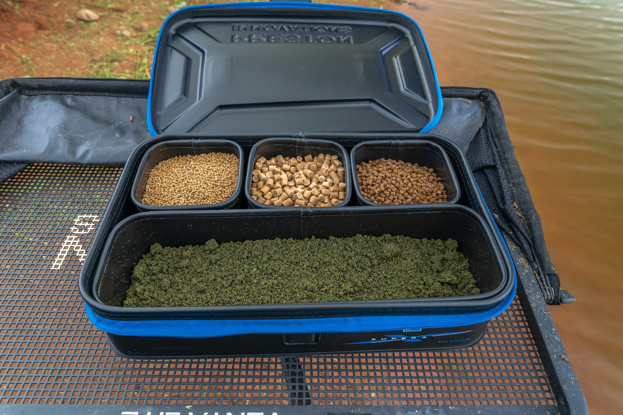 Een uniek ontworpen aas opslagsysteem waarmee je verschillende aasdozen of kleine accessoire items naar de waterkant kunt dragen. Inclusief x4 EVA bowls.