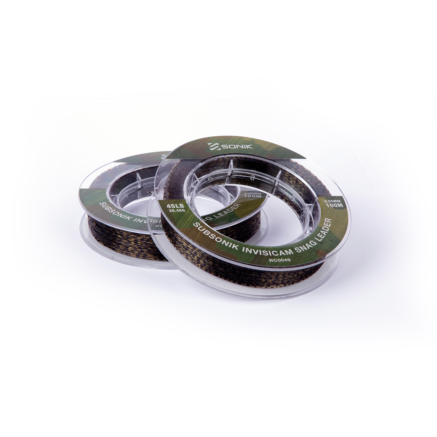 De Subsonik Invisicam Snag Leader is voorzien van een geïntegreerde camouflagevlek, die zorgt voor verhulling met een storende omtrek voor maximale onzichtbaarheid op de bodem van een meer of rivier. Het is supersterk en ultraglad, maar toch extreem slijtvast en heeft een zeer laag knoopgeheugen. Dankzij de hoge knoopsterkte is het het ideale leadermateriaal voor gebruik met Subsonik monofilament of Invisicam monofilament.